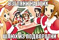 Строчка из субтитров к эпизоду S1 04. Фраза использовалась для троллинга любителей бессмысленного и беспощадного фансаба, сейчас практически забыта. Это первый ответ, который можно получить на вопрос «Какие сабы лучше выбрать для K-ON?». Также встречаются и другие перлы, вроде «Риточке барабаны очень подходят!» и «Риточка, шустра!». А разгадка одна — желание подогнать лунный стиль речи под русский язык. В итоге фамильярное обращение «Рит-тян» превращается в «Риточку» — пиплу нравится. Текущее местоположение первоначального варианта субтитров неизвестно, вероятно, он сейчас вместе с остальными подобными творениями горит в аду.