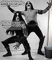В миру известен как Øystein Årseth[4]. В прошлом — гитарист, композитор и главный идеолог Mayhem. Сцотонист, один из членов организации «Черный круг». На пару с Варгом составляли идеологический костяк движения норвежского блэка в годы его становления. Правда, есть основания считать, что Euronymous воспринимал это не серьёзней, чем, например, ребята из Venom или Slayer, или просто не вырос из подростковой позерской психологии, но мы с вами этого уже никогда не узнаем. Весьма не любил христианских металлистов и грозил им анальными карами, правда исключительно в интервью. При всем при этом, мажор из богатой семьи, держал собственный маленький рекорд-лэйбл и музыкальный магазинчик, где издавал и продавал записи себя любимого и своих друзей по блацку. До своего выпила и поднявшейся вслед за этим шумихи проводил довольно грамотный пиар норвежской блэк метал сцены (о чём к примеру свидетельствует то, как он использовал самоубийство Дэда). Был выпилен Варгом 10 августа 1993 года.