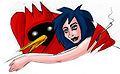 Также, Winged Doom весьма напоминает чудище из фильма The Village (Таинственный лес). Красный плащ, рюкзак за спиной — всё сходится.