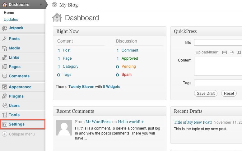 Prevent Spam These steps will help you prevent users and robots from posting Spam on your WordPress blog. Inside the WordPress Dashboard, select Settings in the navigation bar on the left. From the G (updated 691 days ago)