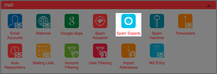 - Click the SpamExperts tool, located in the Mail section.