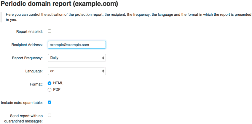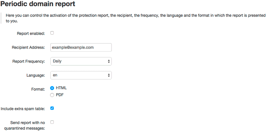 SpamExperts will begin sending you reports based on the frequency specified.