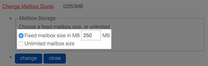 - Click Change Mailbox Quota