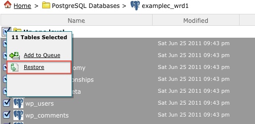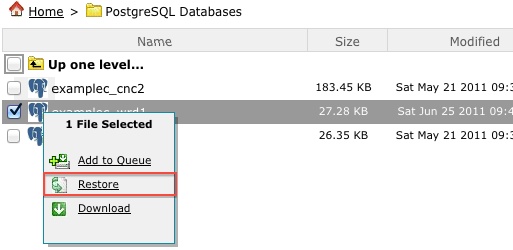 Restore PostgreSQL databases using the Site Backup & Restore tool