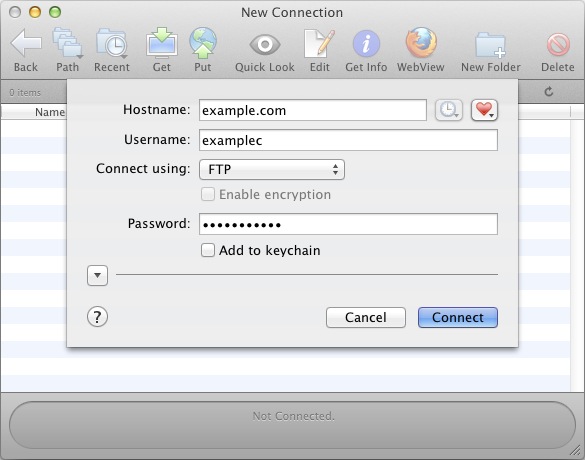 - Enter your FTP password. If you are using the default FTP username, the password is your cPanel password.