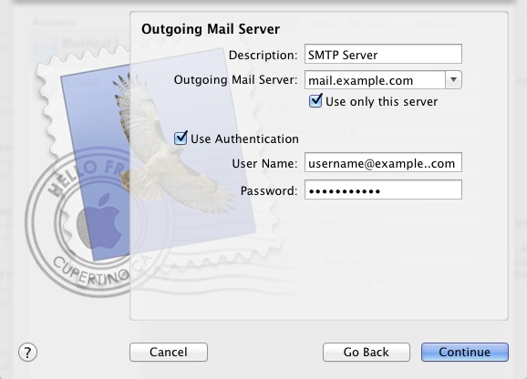 - The Outgoing Mail Server is the same as your incoming mail server. Again, this will be something like mail.example.com