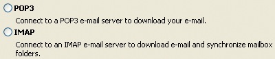 - Please choose your account type. You may select either POP or IMAP. Click here for an explanation on the differences between POP3 and IMAP.