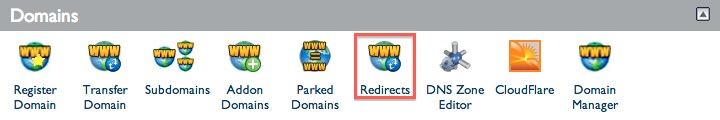 - Click the Redirects icon, in the Domains section of the cPanel.