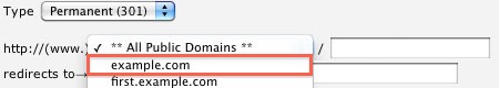 - If you would like to redirect a single page or directory; you can use the text field following the drop-down menu to enter the name of the folder or file.