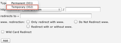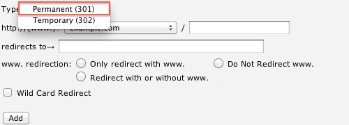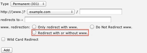- "Do Not Redirect www."This option will not redirect visitors that use www. as part of the URL