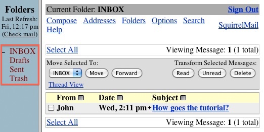 . Click the RoundCube logo. This takes you to the main interface screen for RoundCube where your Inbox will be displayed. On the left are your email folders, by default, RoundCube will always show you (updated 610 days ago)