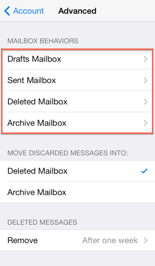 - Under Mailbox Behaviors choose the mailbox you wish to configure.