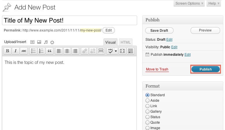 - When the post has been composed, click the Publish button.