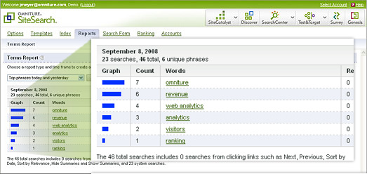 Top: Terms Report | Bottom: SiteSearch Manager