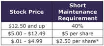 The short sell maintenance requirements are as follows: