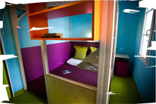 Un hôtel écologique, technologique et coloré, conçu par la designer Matali Crasset autour de l’idée de chambres-cabanes. |