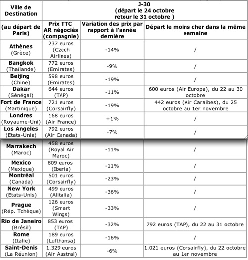 Les tarifs aériens sont toujours moins onéreux que l'an dernier (-16%), notamment pour New York et Prague, qui perdent respectivement 36% et 33% sur un an. Et toute l'actualité du secteur.