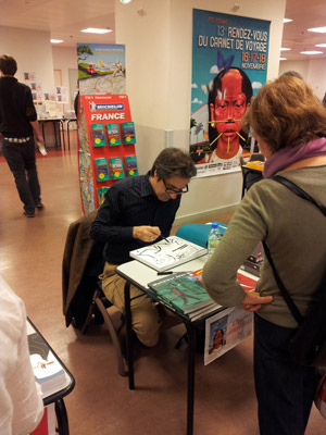 A quelques pas, Fabien Palmari (photo ci-dessous) et Eric Tournaire faisaient découvrir leur délirant guide de la