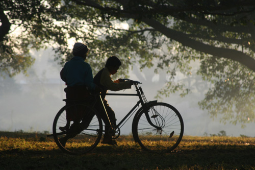 Enfants sous les bagnans vieux de 700 ans, en Birmanie, par Nicole Chassignol.