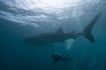 Bien, et maintenant ? Rien que ce bleu violent qui finit par user les yeux. Enfin, un tintement métallique. Un peu comme les trois coups au théâtre. Quelqu’un cogne sur sa bouteille pour signaler quelque chose. L’entracte est fini, le rideau de velours bleu peut se lever. Deux requins pointes blanches déboulent des coulisses et survolent le fond avec l’air concentré de chiens truffiers. Ils sont bientôt rejoints par 4 autres, tout aussi indifférents au courant, tandis que le héros de la pièce, un musculeux requin gris, mastard trapu et inquiétant, surgit de quelque trappe secrète tel un deus ex machina. À distance, enfin, un aréopage de raies aigles, figurantes timides mais très appréciées du public, vient conclure le spectacle de quelques gracieux battements d’ailes.