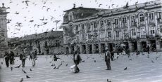 11h du matin. Notre train traverse le Ponte della Libertà. Il pleut, tout est gris. Le ciel se confond avec la mer adriatique. De petits îlots en bois se distinguent et semblent se détacher de cette immensité. Et... après quelques minutes... la voici.