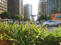 5h45 du matin, quartier nord de Brasilia, le ciel s'ouvre sur des bleus profonds. Appuyée contre l'arbre qui tient lieu d'arrêt de bus, j'attends. Une bicyclette traverse le champ immense, cahote sur la terre lavée des pluies de la veille. Arrive le bus, bondé...