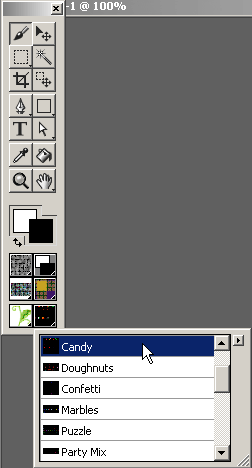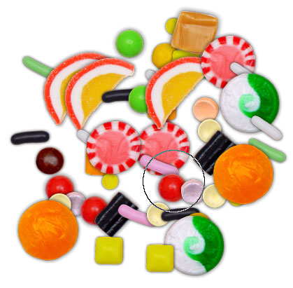 Image Hose(图像水管)是painter的一大特色,图像水管好比图元喷洒器,可以任意创作连续的效果或者特效,是一种非常方便的增效工具。1.选用Image Hose(图像水管)的Linear-Size-P变体,在工具条底部的nozzles(水管图像)面板中选择Candy的水管图像。然后在画面上喷涂,马上可以出现一大堆可爱的糖果。painter 8之前的版本有专门的nozzles面板。