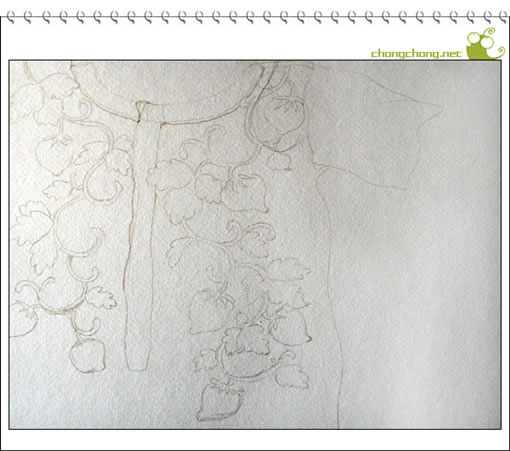 1.用水溶性彩铅轻轻勾线,好处是最后可以洗掉这些线。