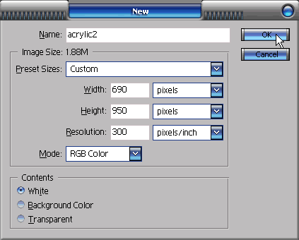1.运行Photoshop 7软件,新建一个竖向的空白文件。