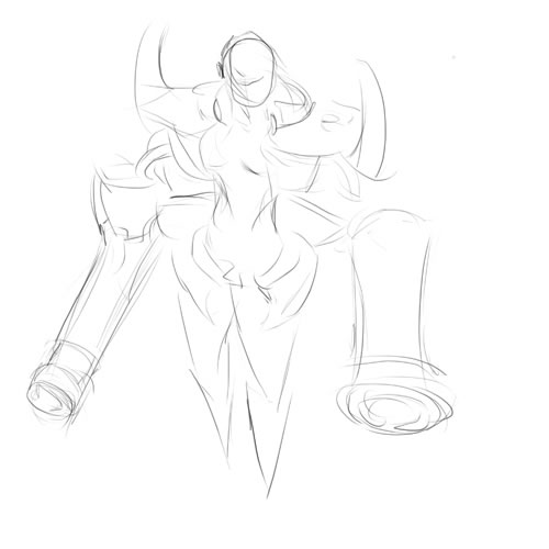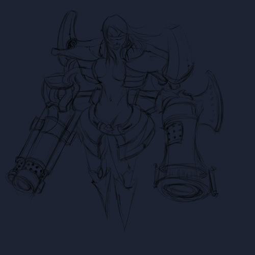 2.使用调整好的笔刷开始绘制人物的草稿,配合Intuos 3完全可以达到传统起稿的效果,如同用铅笔在画板上起稿的感觉,非常的舒服。