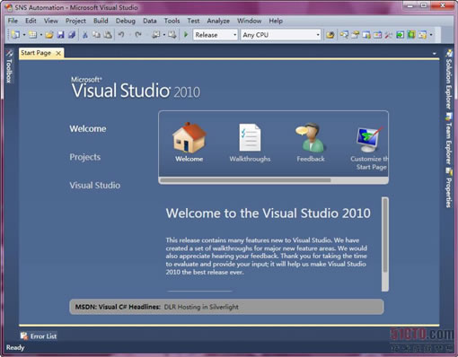 显然微软对Visual Studio 2010 的期望极大,因此如果听见任何的抱怨一定感到难受。但我还是一定会有些抱怨的,这没办法,我总是从实际应用来考虑问题,虽然VS2010是近乎完美的作品。让我们从它的优点开始吧。