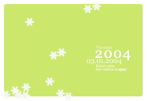 如上图是Relen的个人主页Relen.com,2004版的首页发布信息,尤其是过年前后,利用雪花来点缀页面是非常合适的。注意这里面的雪花的摆设位置是有些技巧的,你可以考虑用黄金分割来支配你的设计思路,以达到合理、舒适的效果。
