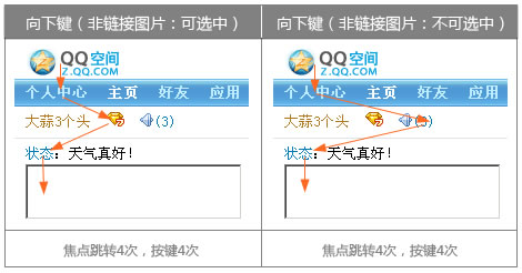 在页面中放过多的图片,会增加按键次数。因为QQ浏览器中的设置项——“非链接图片”默认是“可选中”,即无论图片是否带链接都会获得焦点。