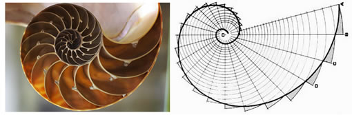 鹦鹉螺曲线的每个半径和后一个的比都是黄金比例,是自然界最美的鬼斧神工。
