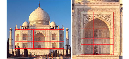 黄金分割率和黄金矩形能够给画面带来美感,令人愉悦。在很多艺术品以及建筑中都能找到它。埃及的金字塔,希腊雅典的巴特农神庙,印度的泰姬陵,这些伟大杰作都有黄金分割的影子。