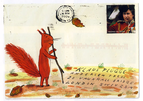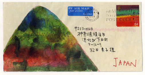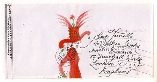下面这个童书出版者,大大方方地把画家们寄给她的实寄封展示出来,惊叹于出人意料的创造力和奔放的色彩之余,也很羡慕这些信封上没有任何印刷的痕迹。(中国的邮政系统为了多赚钱,越俎代庖,限制了我们的想象力)