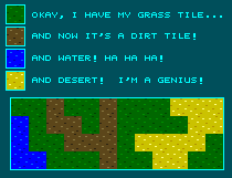 现在你可以选择你喜欢的方式来作画,除了这里提到的几个外还有很多别的方法...要紧记的一点就是草丛的立体感,它不该是平平的一块,而如果从头到尾只使用单一的图块来拼合一张地图,这样的效果是很恐怖的,参见下图: