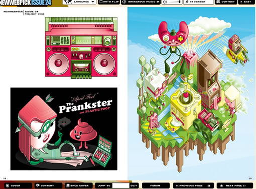 《NewWebPick》电子杂志内容涉及: 广告、网站、FLASH、平面、街头艺术、插画、3D、产品与包装、建筑与空间、摄影、时装、试验艺术...