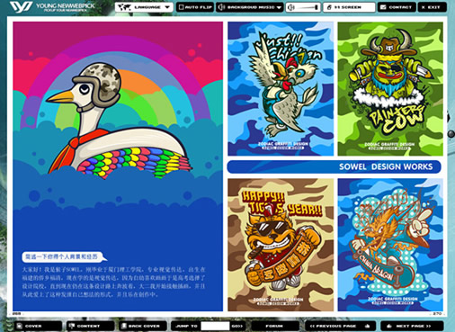 《YoungNWP》电子杂志内容涉及:广告设计、网站设计、FLASH、动画设计、服装设计、平面、街头艺术、插画、3D、产品与包装、建筑与空间、摄影、试验艺术...
