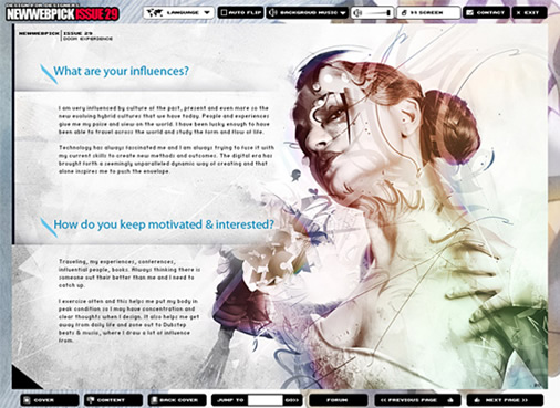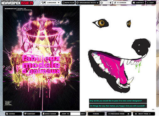 《NewWebPick》电子杂志内容涉及: 广告、网站、FLASH、平面、街头艺术、插画、3D、产品与包装、建筑与空间、摄影、时装、试验艺术...
