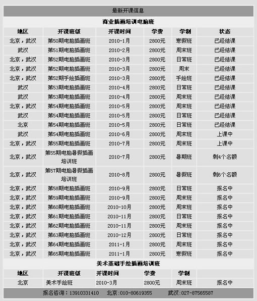 - 插画培训7月暑期1班:2010年7月14-8月4日(已招满)