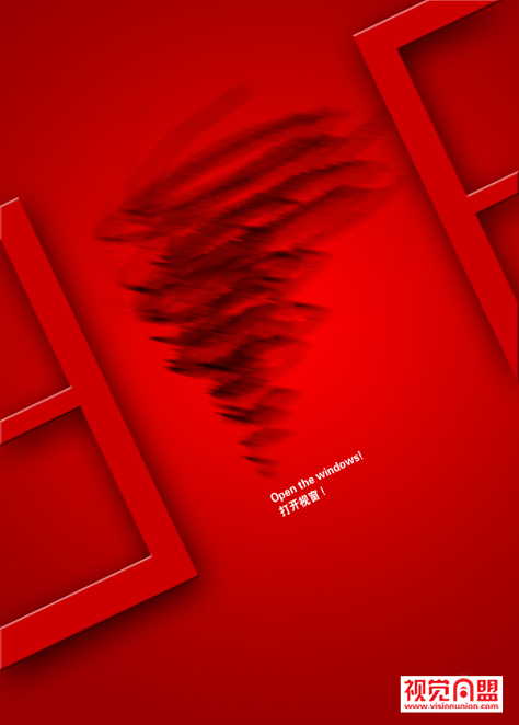153号参赛作品 作者:第⑧號當鋪 作品说明:本参赛作品主题为《Open the windows!打开视窗!》 本海报的意义为:设计不能固守成规,我们需要打破,我们需要打开各种思维方式,我们需要震撼力像龙卷风一样摧毁一切保留原创!