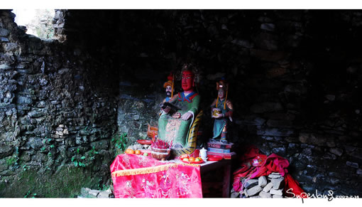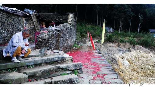 3个小时后到达了莲花寺,这是一座已经破败的古寺,原先叫做飞瓦寺,我看到有一老一少的和尚,还有一只叫做奇奇的斗牛犬,守候在这山谷里的佛门之地。不过,附近的百姓已经给这里捐助新建筑了,目前还是一片工地,基脚已经建好,也许以后,莲花寺将是香火旺盛。