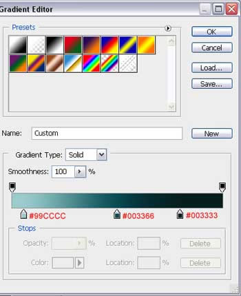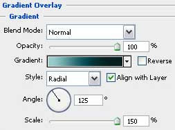 新建一个大小为1280×1024像素、分辨率为300像素的文档。接着新建一个图层,然后运用矩形选框工具(U) 选取整个画面。现在选择 图层样式>渐变叠加。(按照下图的值进行填充)