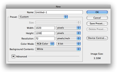 1. 第一件需要做的事情就是新建1020×1200像素的psd文档.