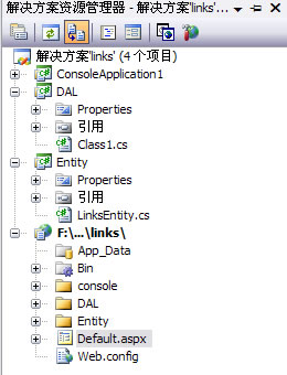 这里采用了通用的多层架构,当然,只是简单的实体层/数据层和表现层,这里只为了演示.在这个小项目中,读取的是数据库中一个名为Links数据表的内容.