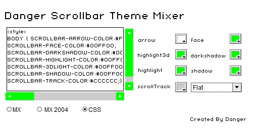 - scrollbar-face-color: color; /*立体滚动条的颜色(包括箭头部分的背景色)*/