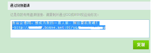 2. 链接邀请: 直接将链接通过qq、群、MSN等即时通讯发给好友、同事、生意伙伴