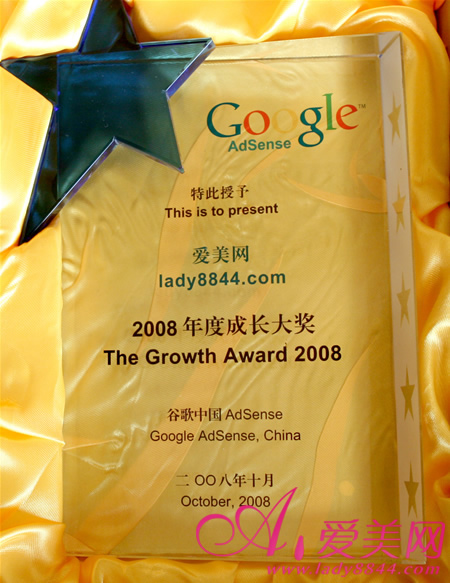 爱美网荣获Google 2008年度最佳成长网站奖。
