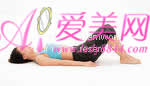 1 平躺软垫上,双手平放身旁,双肩下沉,臀部贴紧软垫,双膝屈曲;